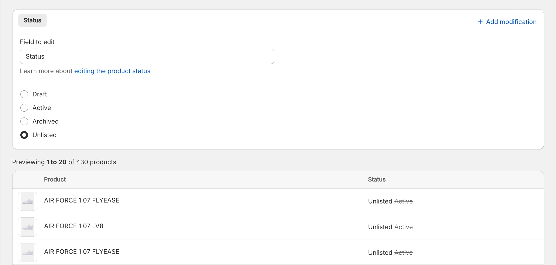 You can now use the unlisted status in Ablestar Bulk Product Editor for filtering and editing products.