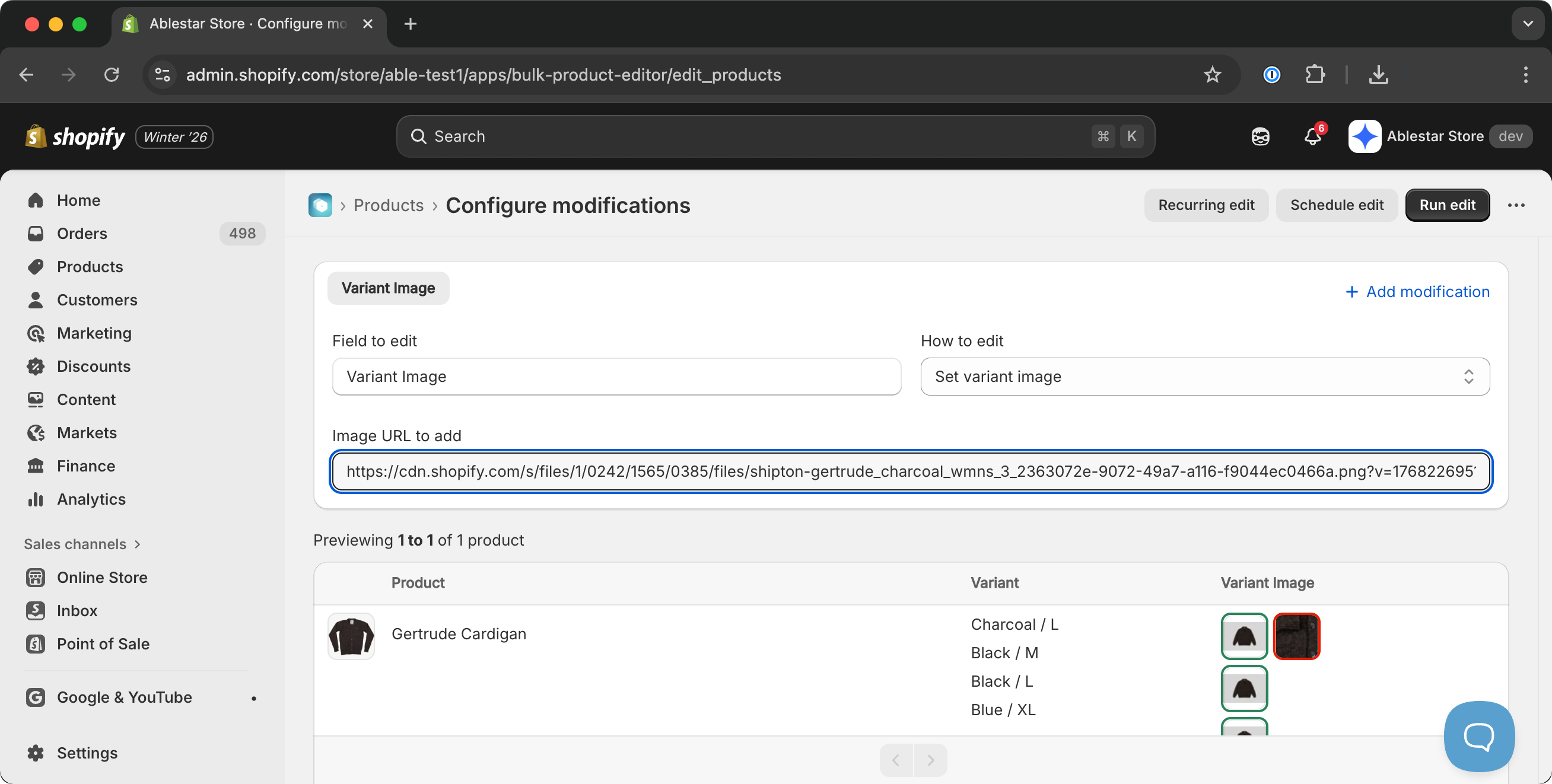 You can now set or remove variant images in bulk using the in-app editor. This is useful when you need to assign specific images to individual variants across many products - for example, assigning a "Red" variant to its corresponding red product image.